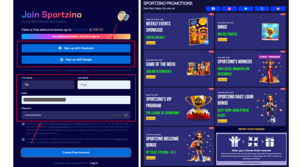 I’ve spent some time on Sportzino, and overall, it’s been pretty straightforward. Registering was quick and easy—you can sign up using Facebook or Google, or just create an account with your name, email, and password. The process didn’t take much time, which was nice.